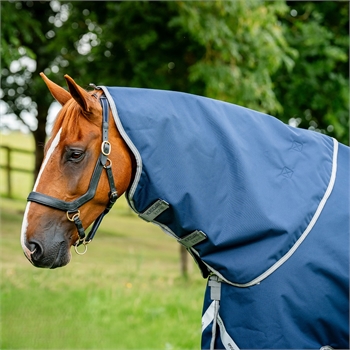 A Pescoçeira Amigo 1200D Turnout Exterior garante máxima proteção ao pescoço do cavalo durante os dias frios e chuvosos. Fabricada em tecido de 1200 Denier, é resistente, impermeável e respirável, proporcionando conforto e bem-estar. O forro em nylon suave evita fricções e assegura um ajuste confortável. Desenvolvida para ser utilizada em conjunto com a manta Amigo Bravo 12, conecta-se facilmente através de um sistema de fixação seguro, mantendo a cobertura estável e no lugar. Disponível na elegante combinação de cores Marinho/Cinza, com enchimento de 150 g, é a escolha ideal para reforçar a proteção do seu cavalo no Inverno.